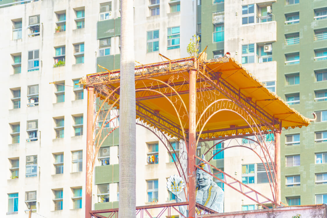 廟宇的屋脊停在時間之外,高樓卻不斷林立。
